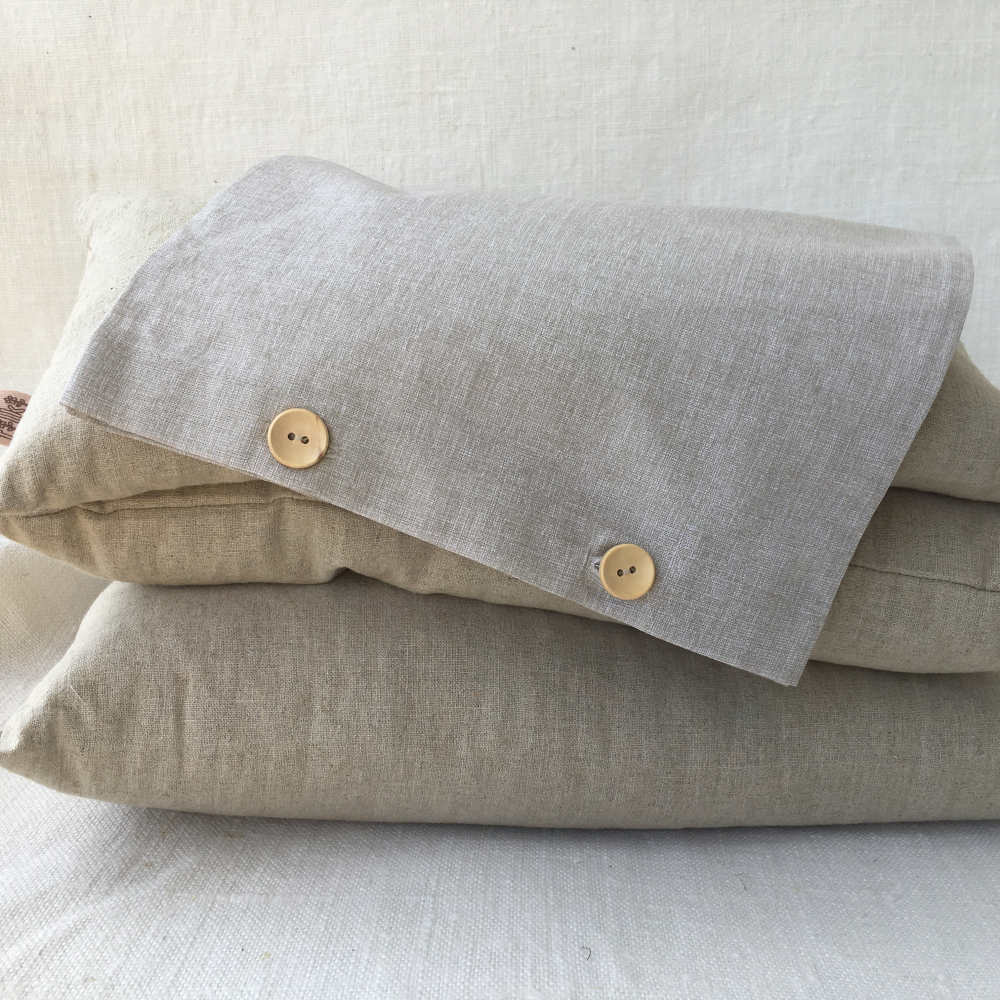 Návliečky sa zapínajú na drevené gombičky, ktoré prišívam ručne. Typ gombíka môže byť odlišný od vyfoteného, podľa toho, aké mám k dispozícií.