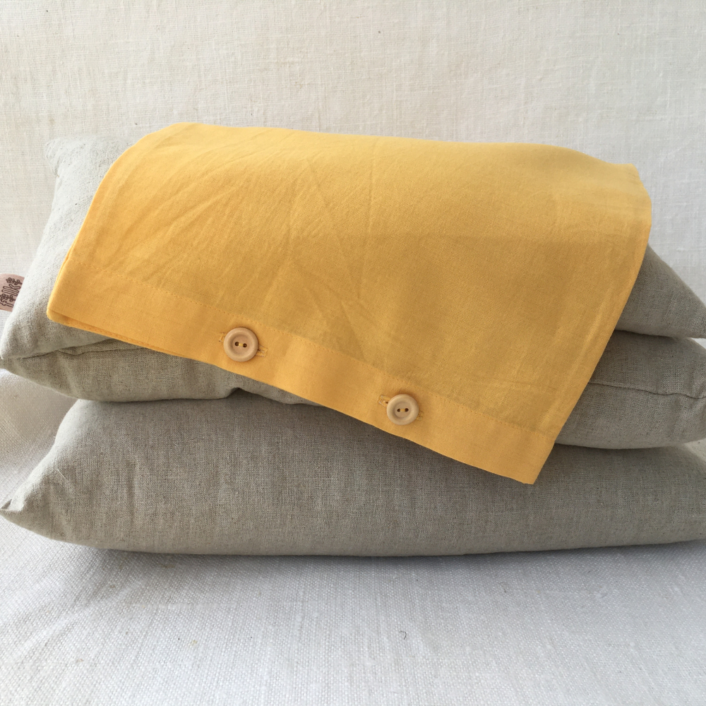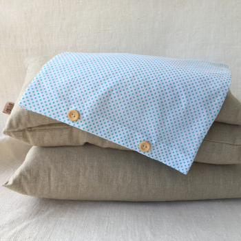 Návliečky sa zapínajú na drevené gombičky, ktoré prišívam ručne. Typ gombíka môže byť odlišný od vyfoteného, podľa toho, aké mám k dispozícií.