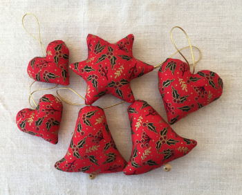 Dekorácie sú ušité z bavlny so zlatou potlačou.
