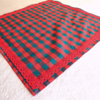 Bavlnený štvorcový obrus - červenozelený kanafas s červenou čipkou
