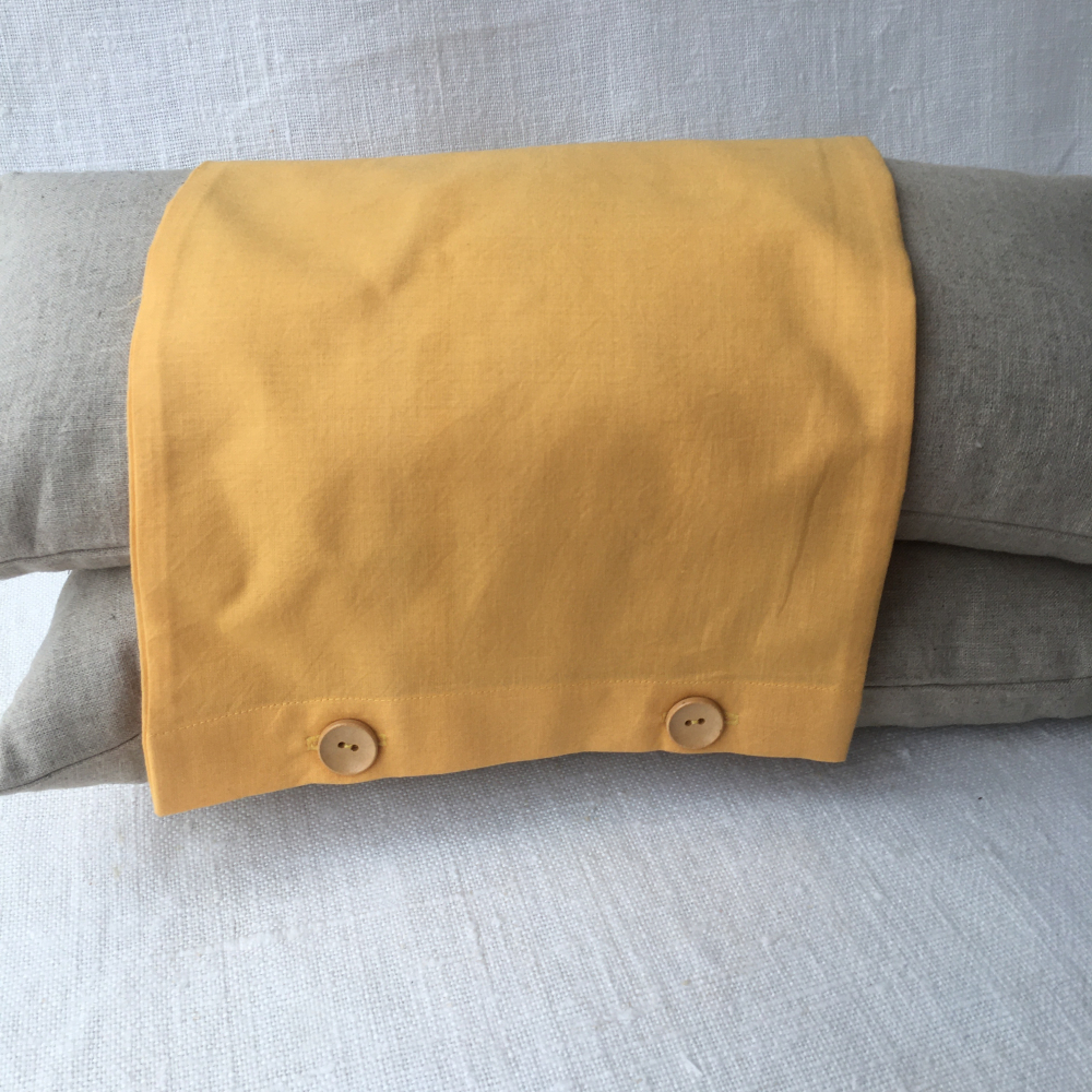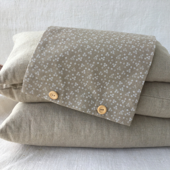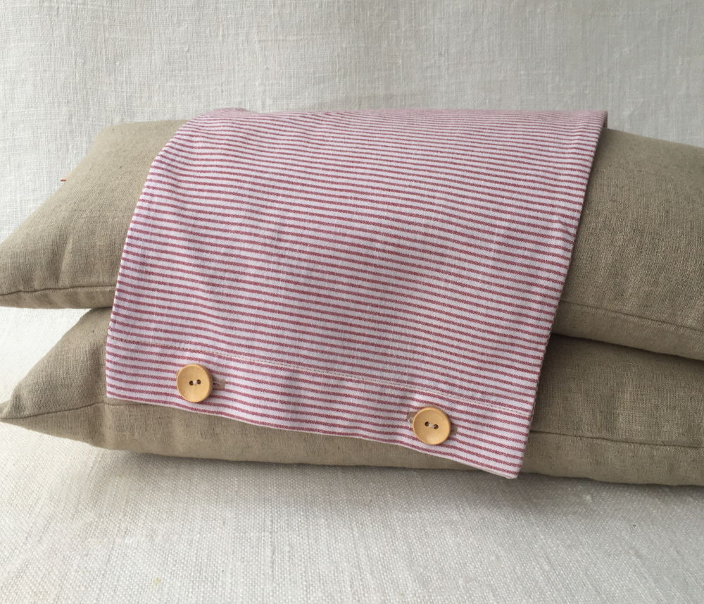 Návliečky sa zapínajú na drevené gombičky, ktoré prišívam ručne. Typ gombíka môže byť odlišný od vyfoteného, podľa toho, aké mám k dispozícií.