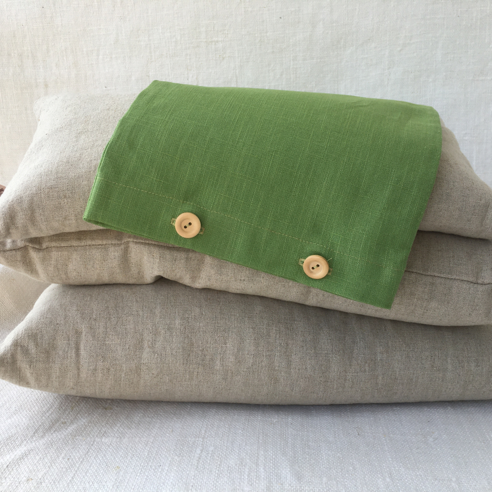 Návliečky sa zapínajú na drevené gombičky, ktoré prišívam ručne. Typ gombíka môže byť odlišný od vyfoteného, podľa toho, aké mám k dispozícií.