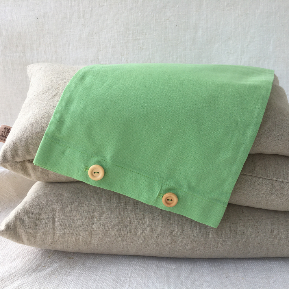 Návliečky sa zapínajú na drevené gombičky, ktoré prišívam ručne. Typ gombíka môže byť odlišný od vyfoteného, podľa toho, aké mám k dispozícií.