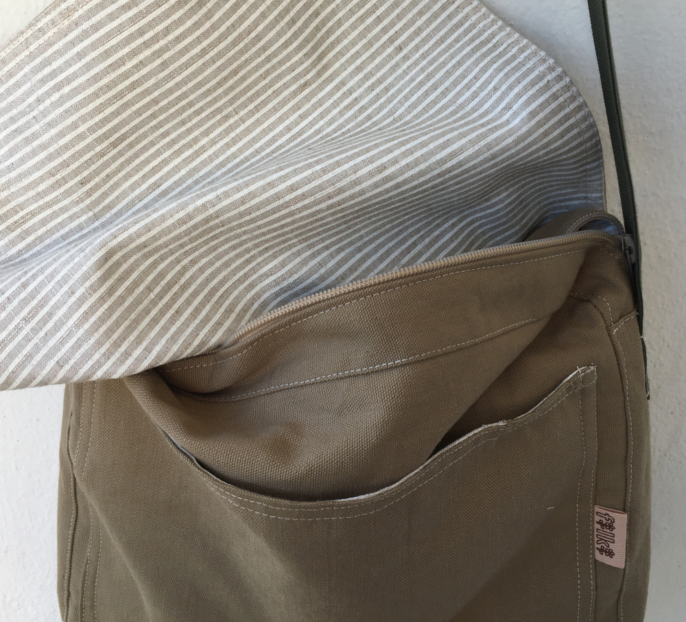 Ucho je zo bavlneného popruhu a dĺžku si upravíte si, ako potrebujete. Popruh má dĺžku skoro 1,5 m. Buď zavesíte na plece, alebo krížom cez telo. Kabela môže ležérne ležať na zadnej časti vášho tela.