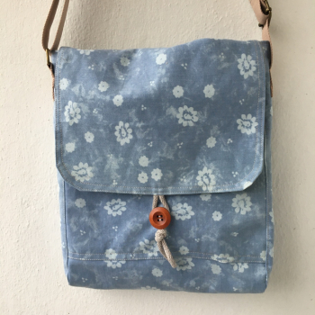 Vonkajšia látka je svetlomodrý denim s kvietkami a vnútro je bielo-béžová ľanová látka s 20% polyesterom.