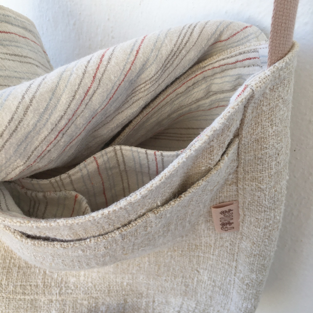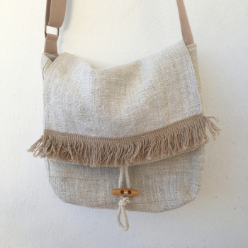 Ucho je z bavlneného béžového popruhu a dĺžku si upravíte si, ako potrebujete. Popruh má dĺžku skoro 1,5 m. Buď zavesíte na plece, alebo krížom cez telo. Kabela môže ležérne ležať na zadnej časti vášho tela.