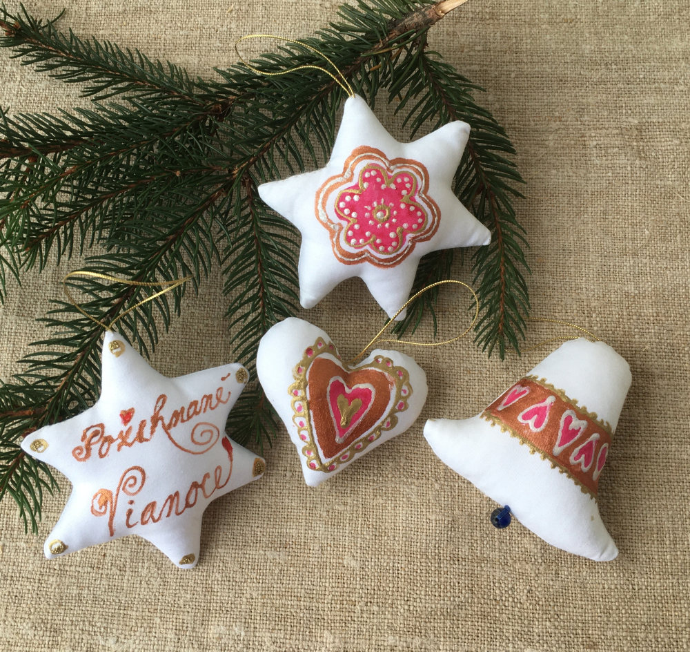Vyplnené sú syntetickým rúnom. Kúsky sa vešajú na zlatú šnúrku.