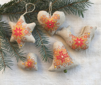 Dekorácie sú ušité z poloľanu a ozdobené ručnou maľbou.