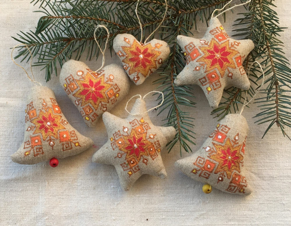 Dekorácie sú ušité z poloľanu a ozdobené ručnou maľbou.