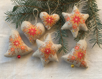 Vyplnené sú syntetickým rúnom. Kúsky sa vešajú na ľanovú šnúrku.