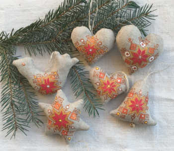 Vyplnené sú syntetickým rúnom. Kúsky sa vešajú na ľanovú šnúrku.